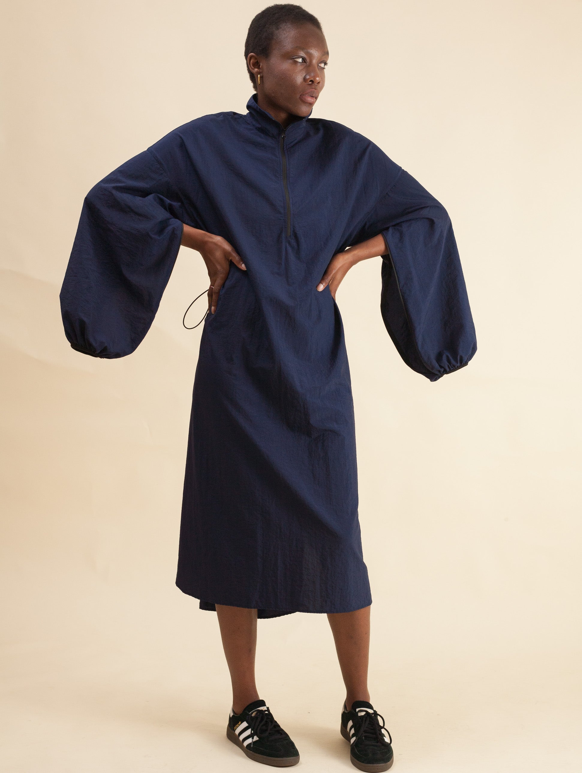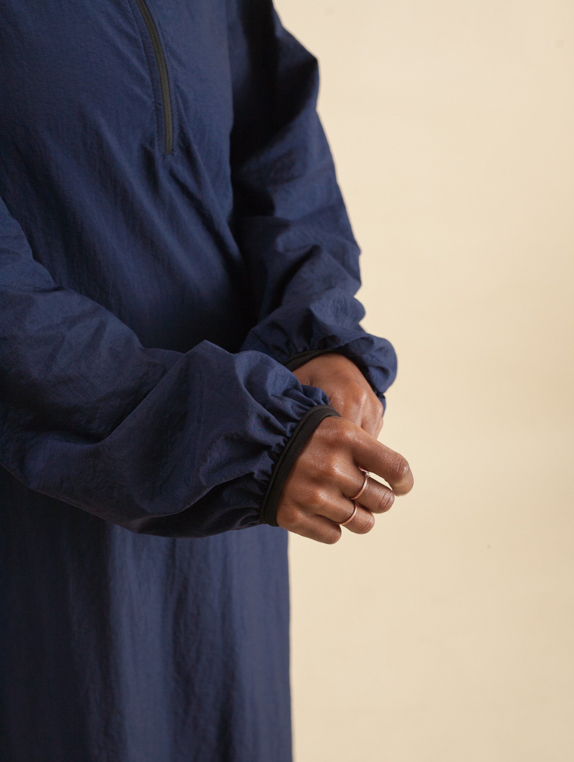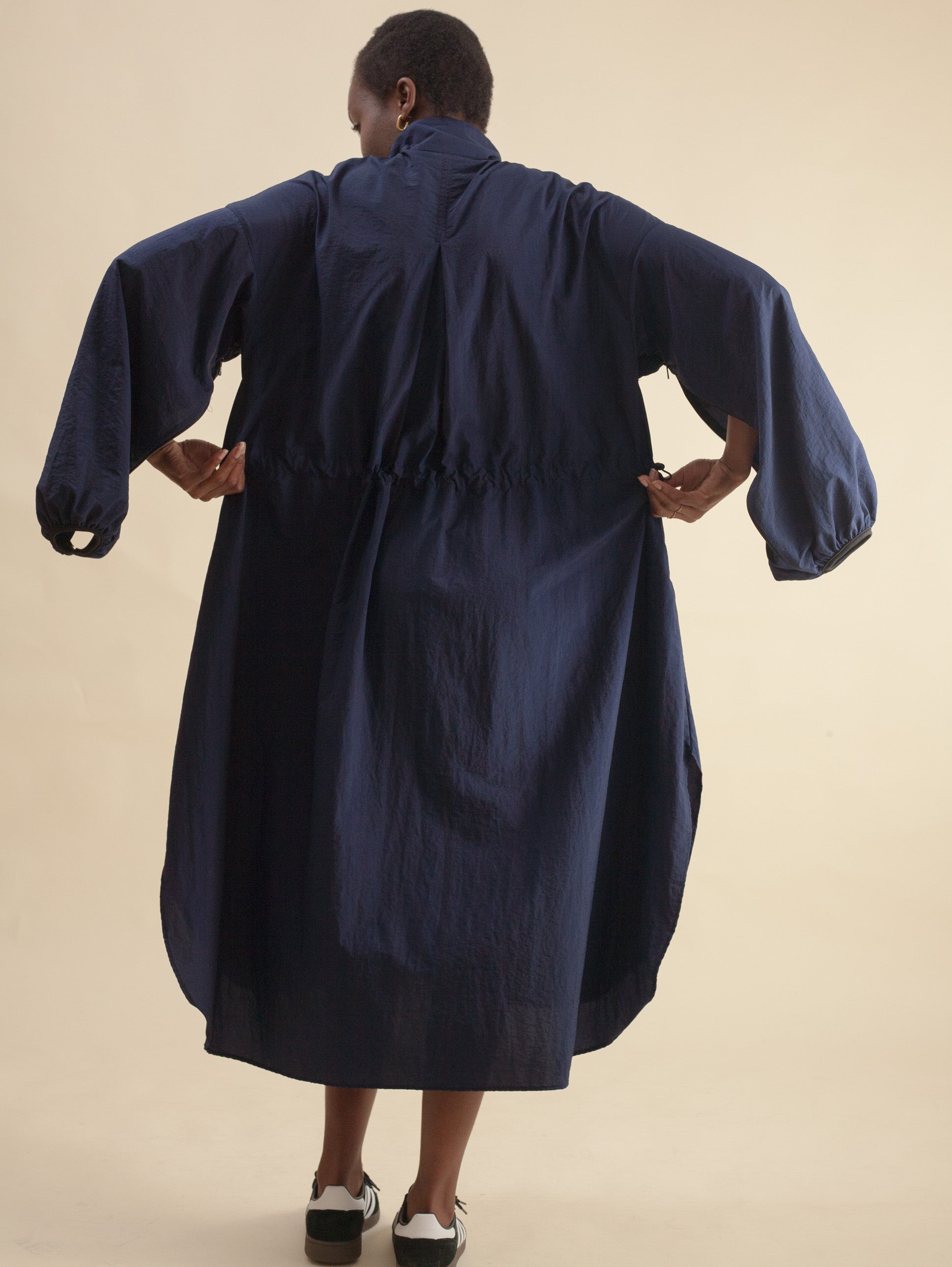 Made from superior quality technical fabric. It has a zip front turtle neck detail, long, billowing sleeves with invisible zip closure details for trans-seasonal versatility. It also has an adjustable draw string back detail making it a comfortable everyday piece for a professional and relaxed look. It has an angelic flow as you walk with it being slightly dropped at the back.