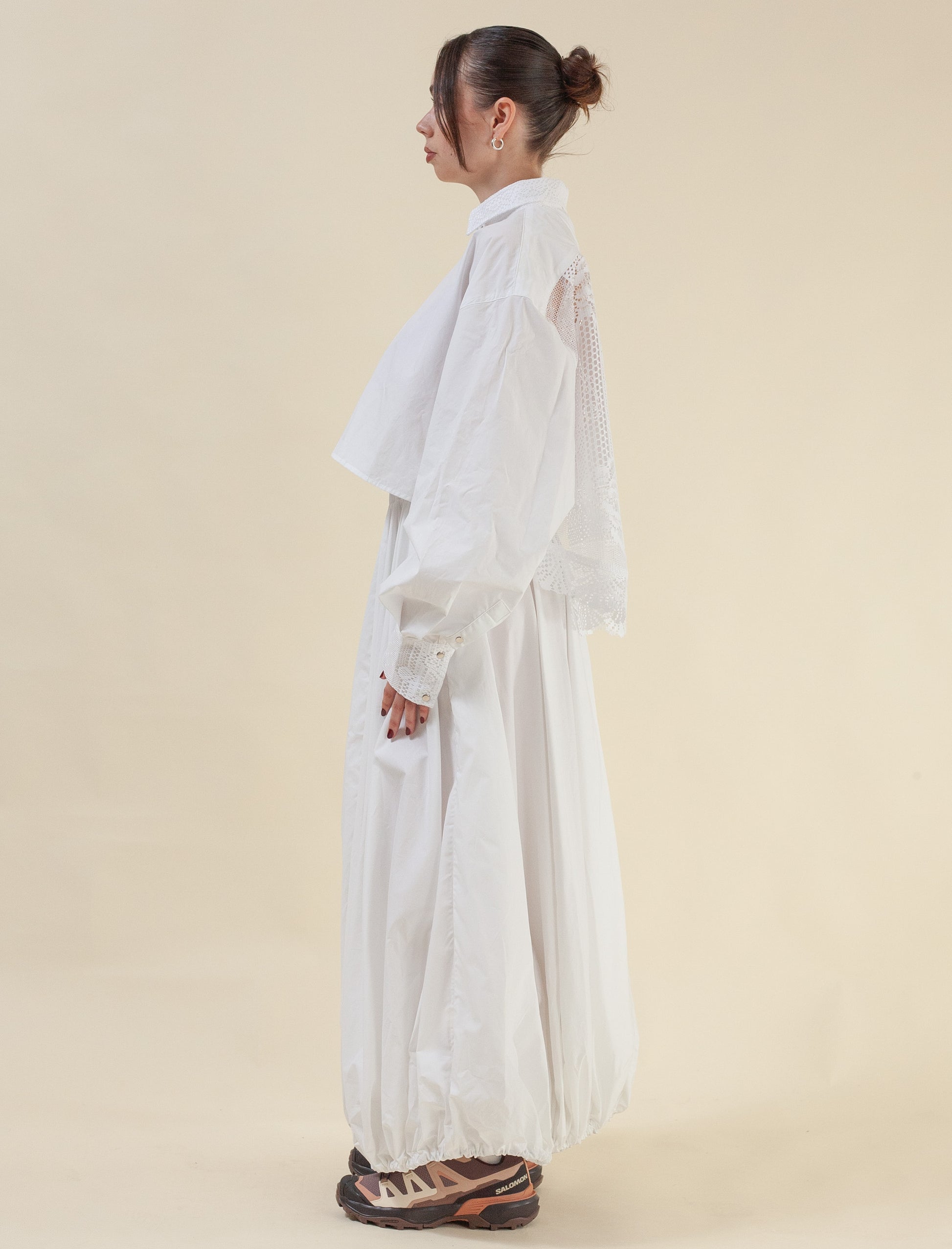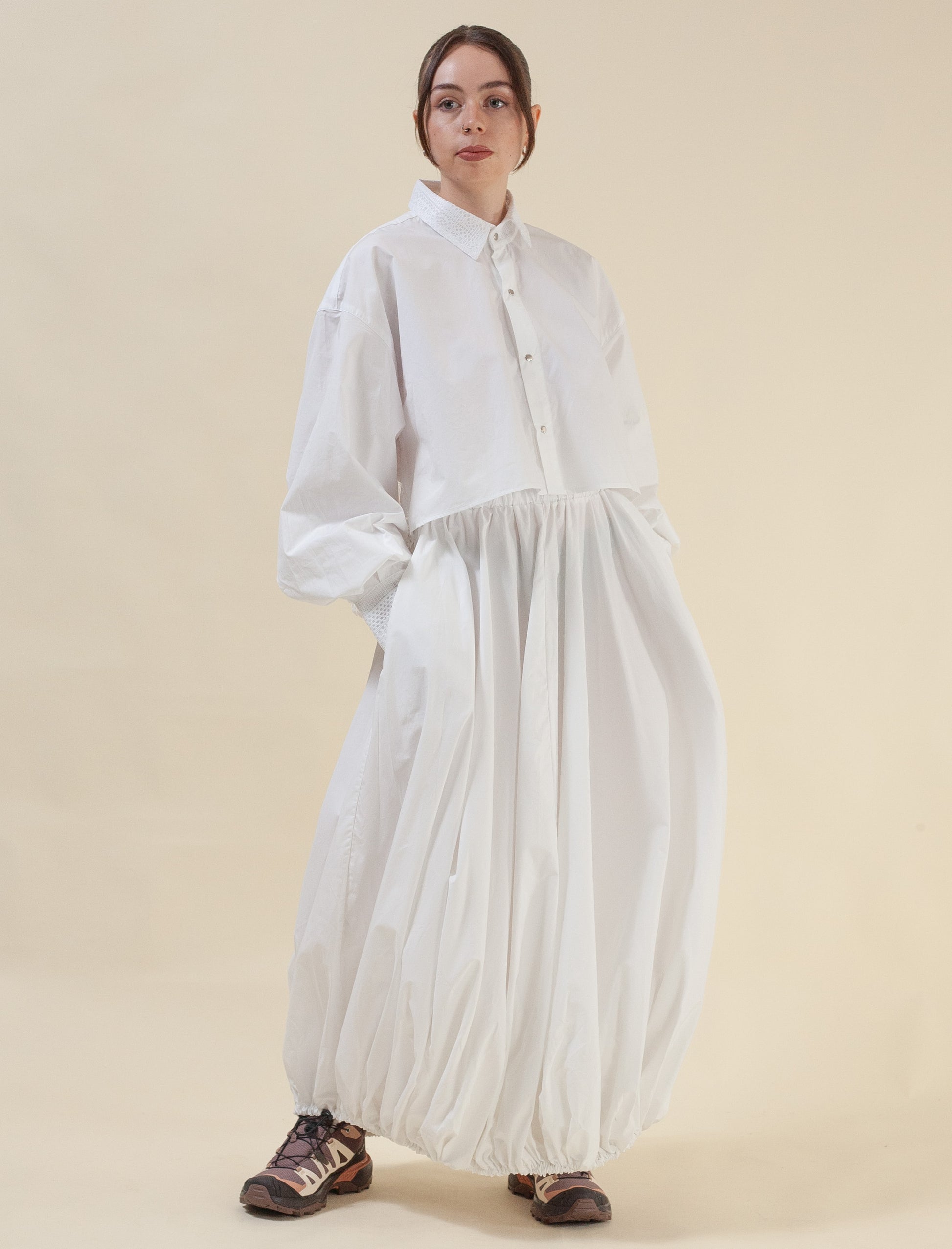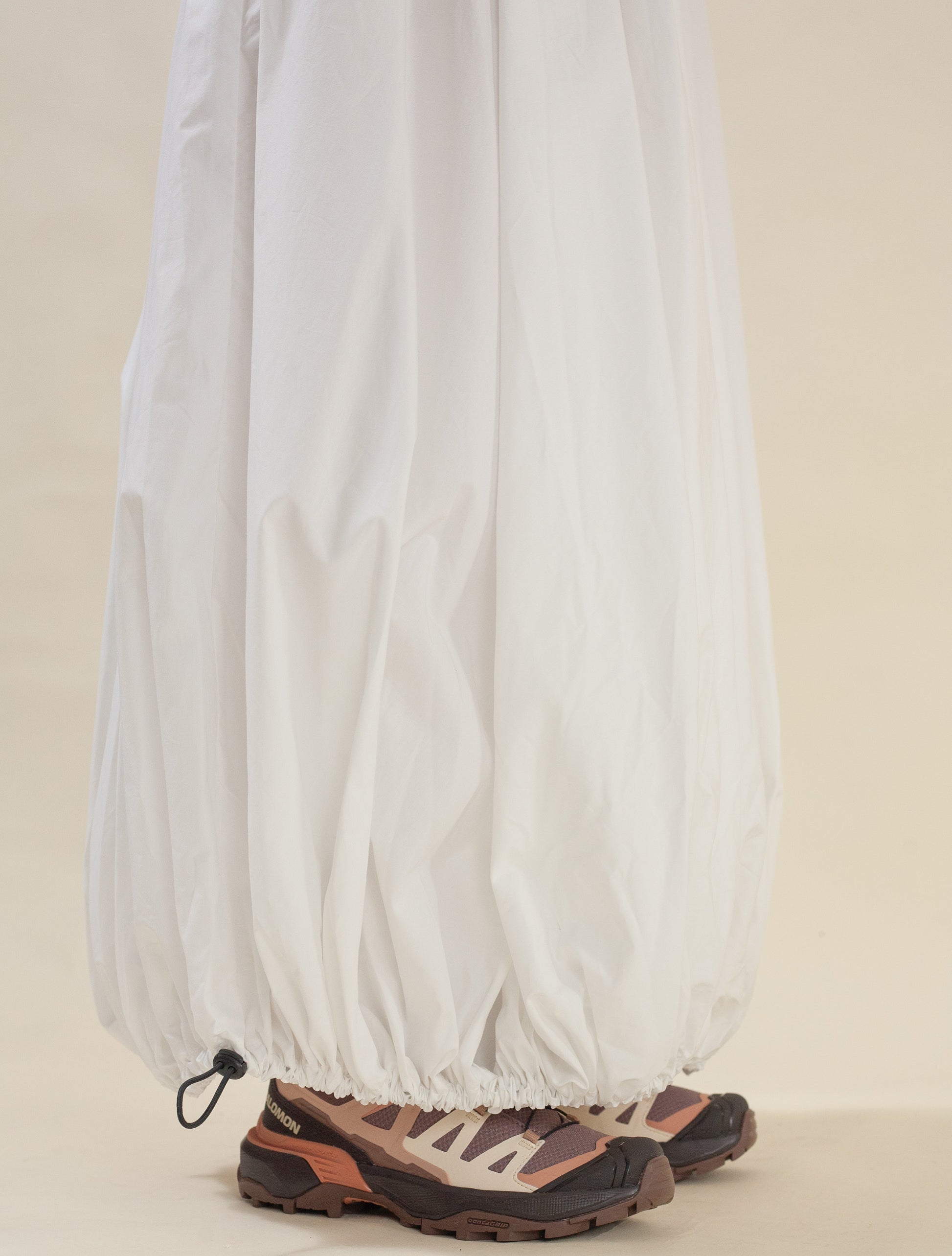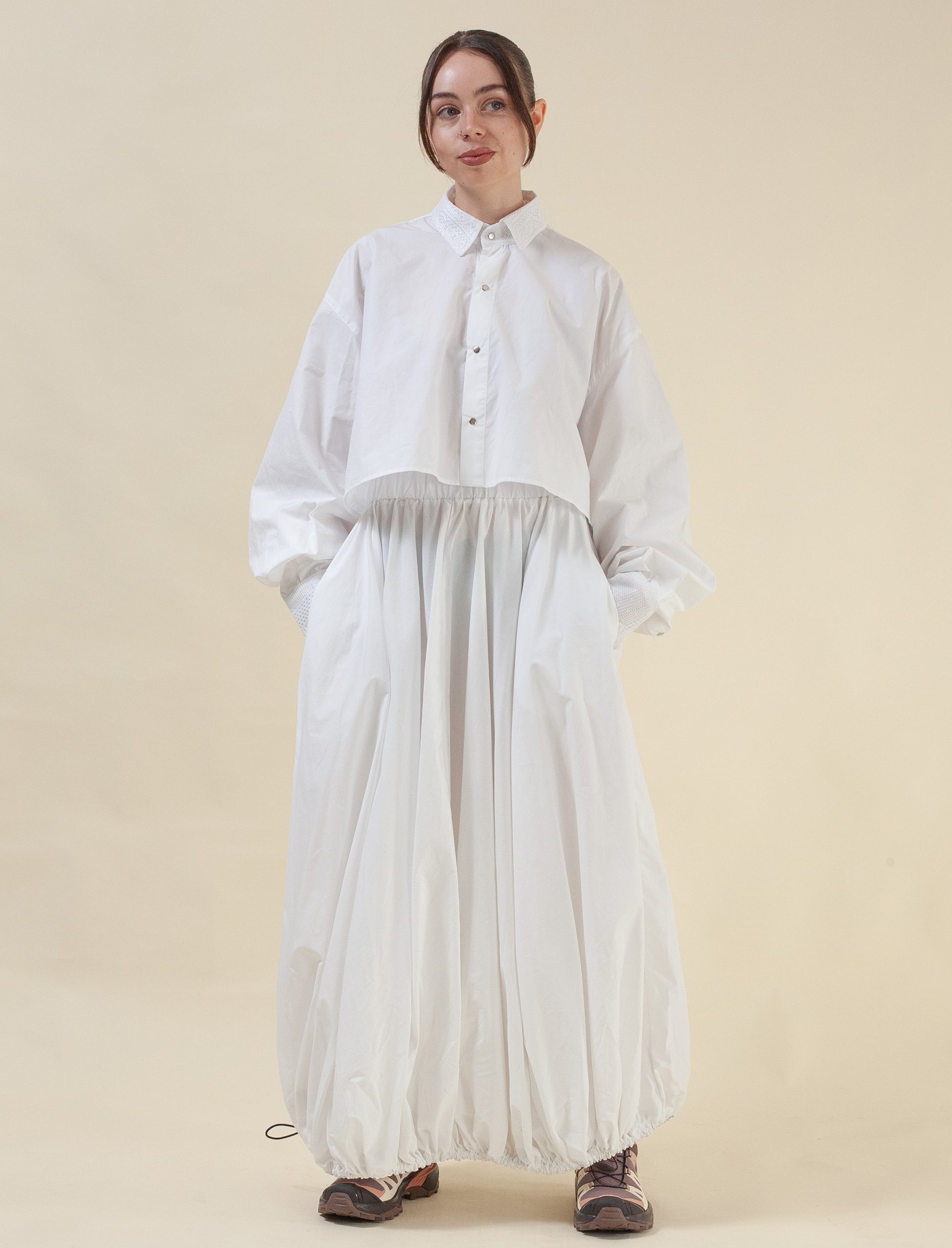Made from Cotton Poplin (300 thread count). The ultimate Summer or Winter Skirt with draw-string pull detail at the bottom to allow for more volume. It has an elastic finish at waist for comfort and 2 pockets. Wear with slip-ons, sneakers for the ultimate modular look.