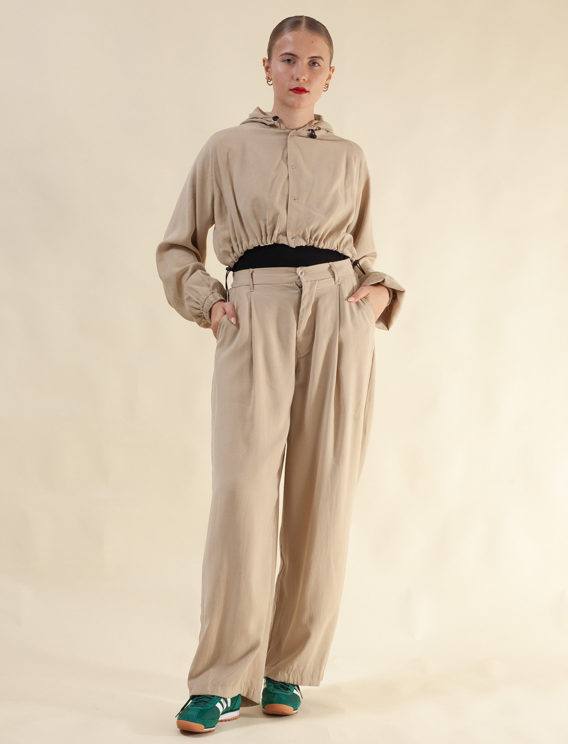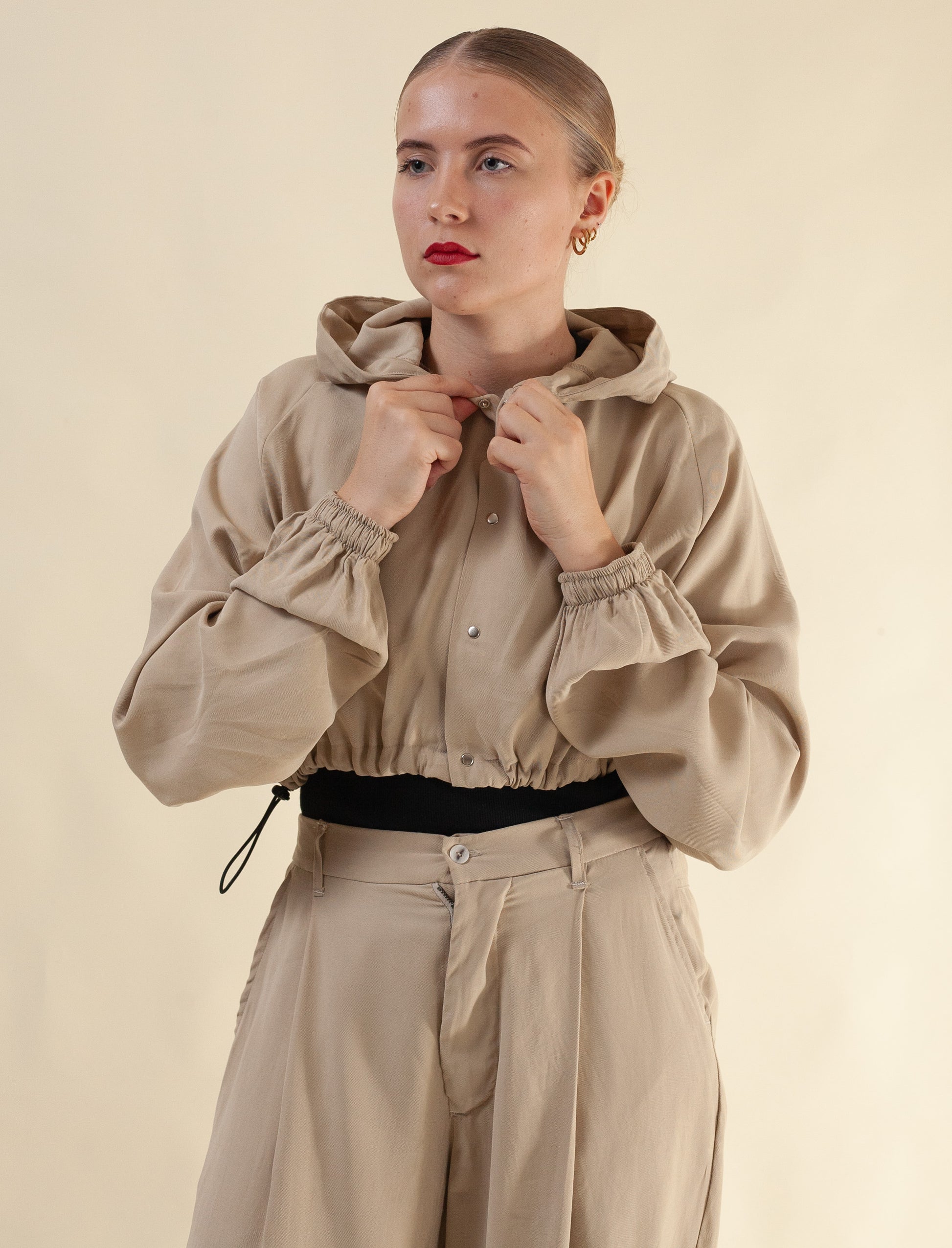 Made from light weight Tencel Twill. This premium jacket features a durable drawstring finish in the hood. Made with design thinking, for a relaxed look, you can easily pair this utility jacket up with jeans and sneakers; or pair it up with a smart shirt and trousers for a more professional look.