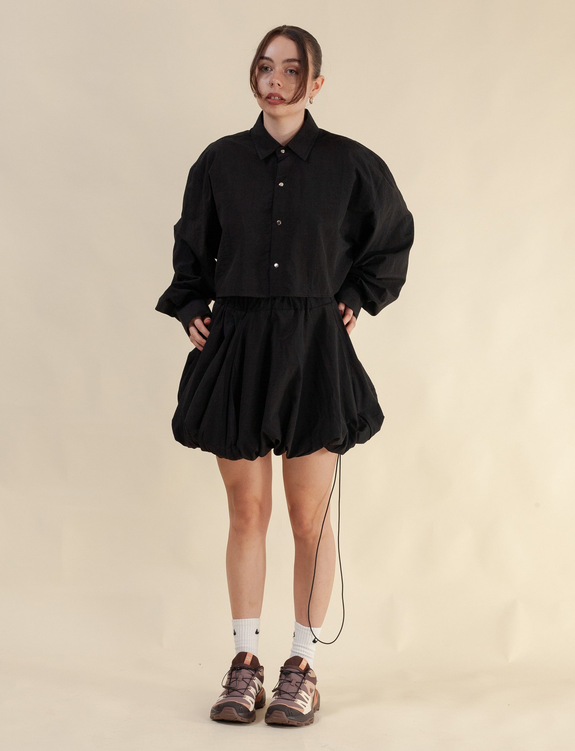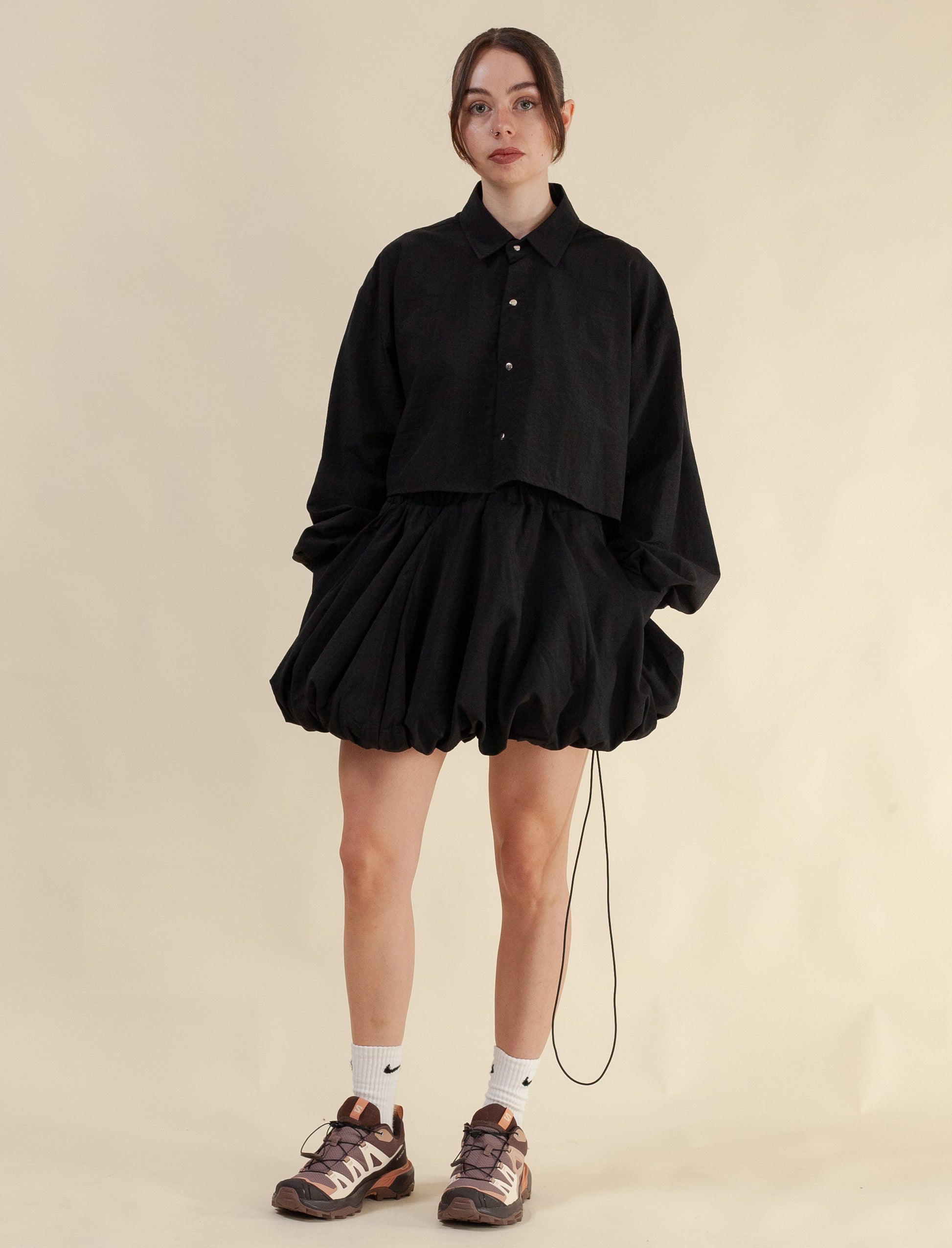 Made from Superior Quality Technical Fabric. The ultimate Summer or Winter Skirt with Draw-string pull detail at the bottom to allow for more volume. It has an elastic finish at waist for comfort and 2 pockets. Wear with slip-ons, sneakers with the ultimate modular look.