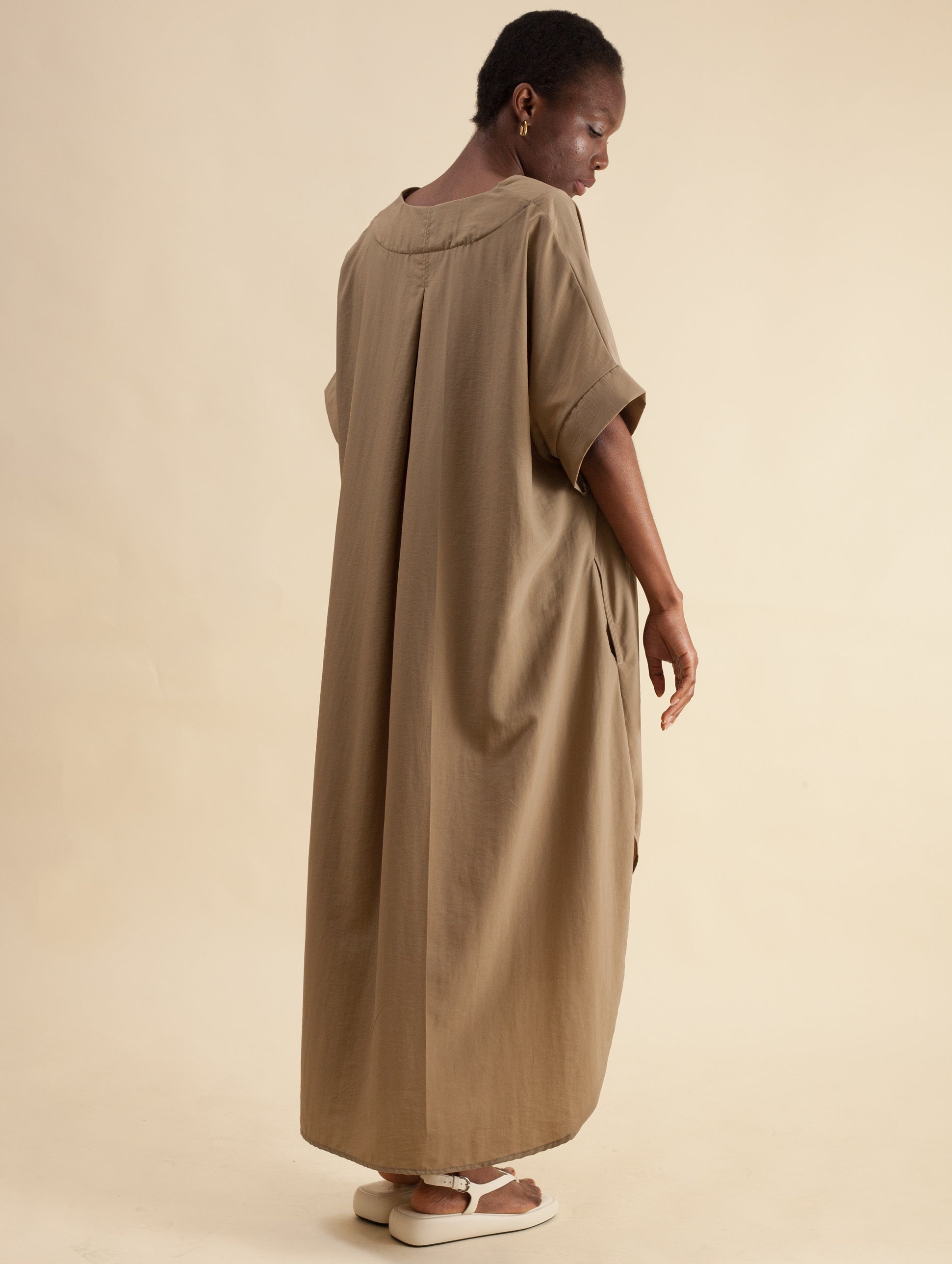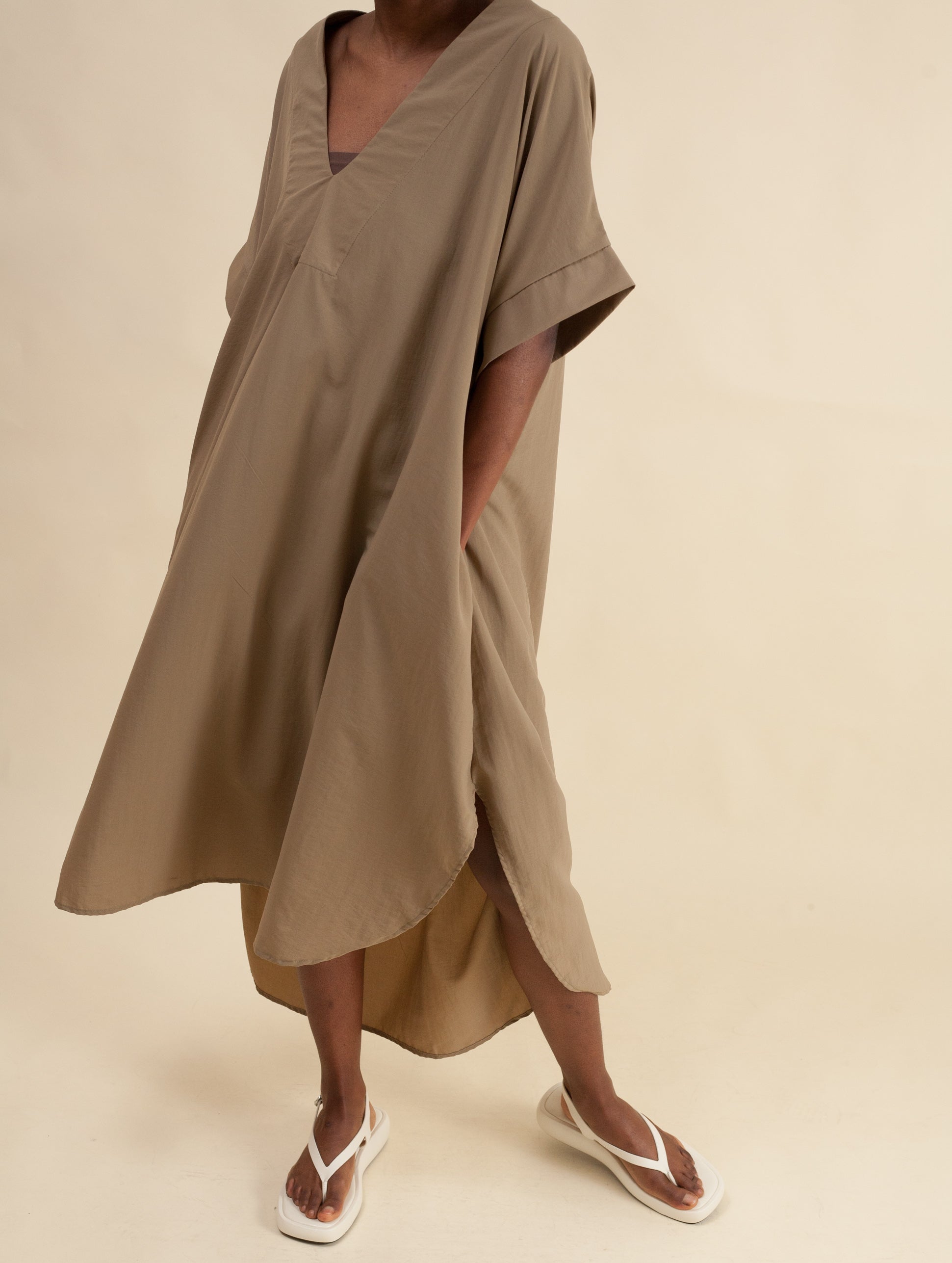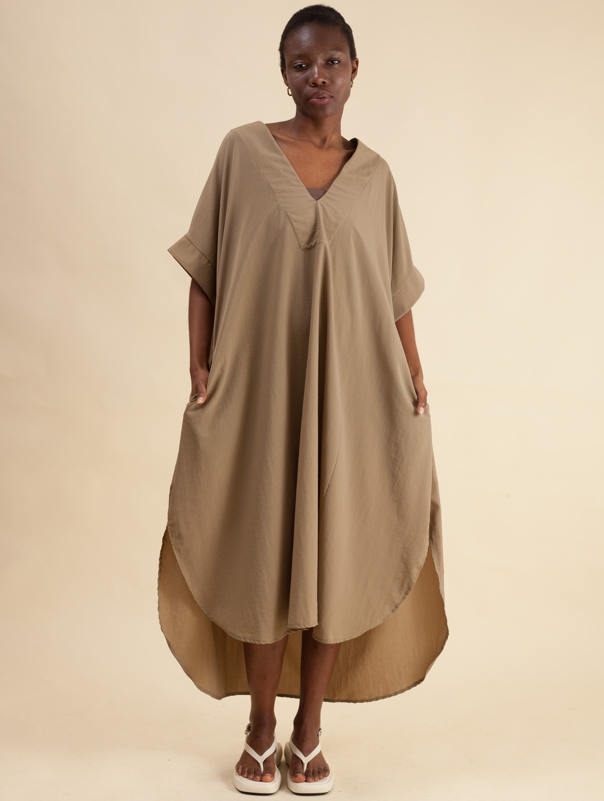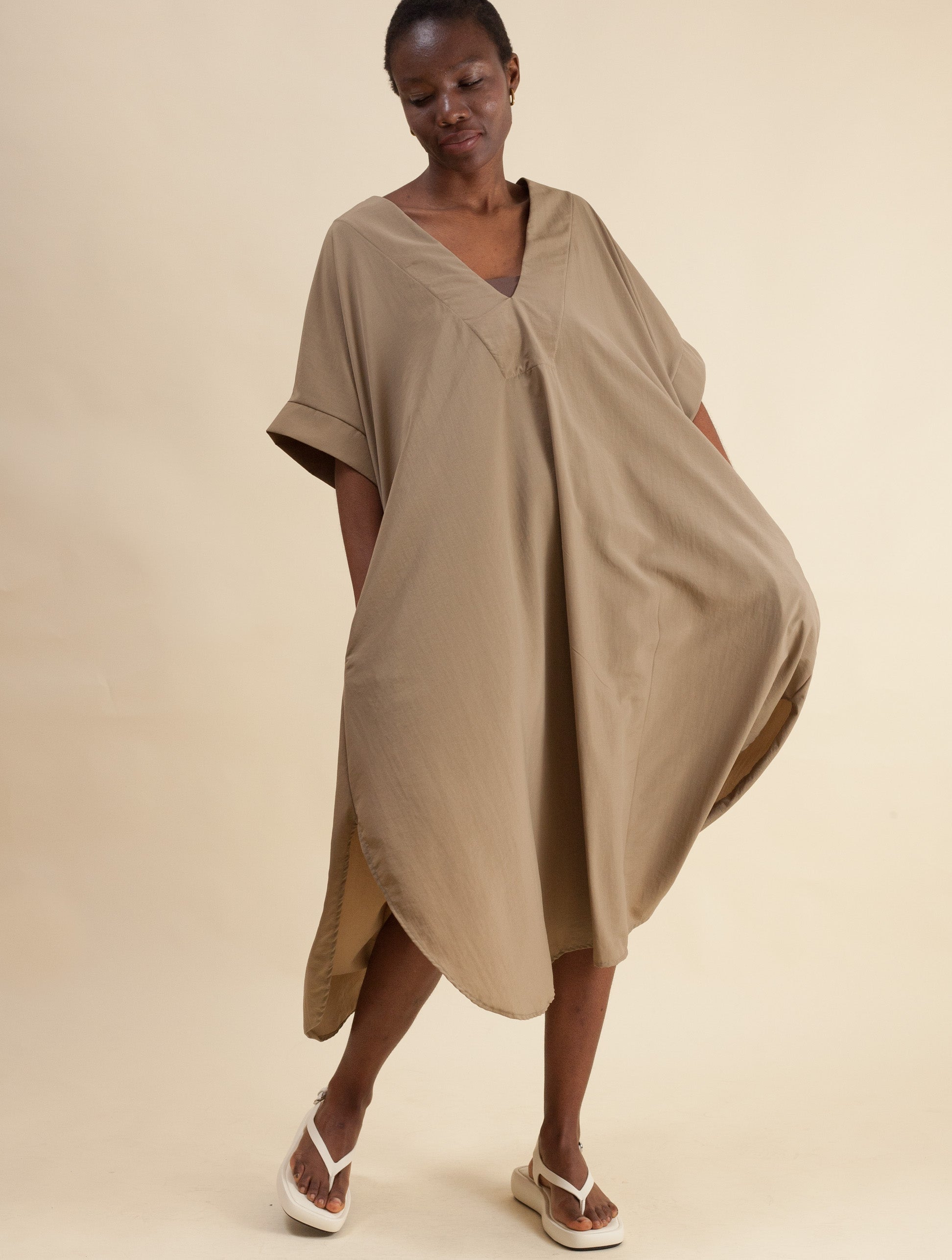 Made from Superior Quality Technical Fabric. It’s an effortless, chic and comfortable piece. It has an angelic flow as you walk with it being slightly dropped at the back. It has a flattering plunge neck, making it versatile to wear for both business and pleasure. It's short, folded turn up sleeve makes it the ultimate everyday Caftan for a more relaxed look. Pair with a polo neck for Winter  or on it’s own in the Summer. It’s a comfortable holiday piece, relaxed, with sneakers or summer sandals for that ultimate beach look or belted with heels for a work/business look.