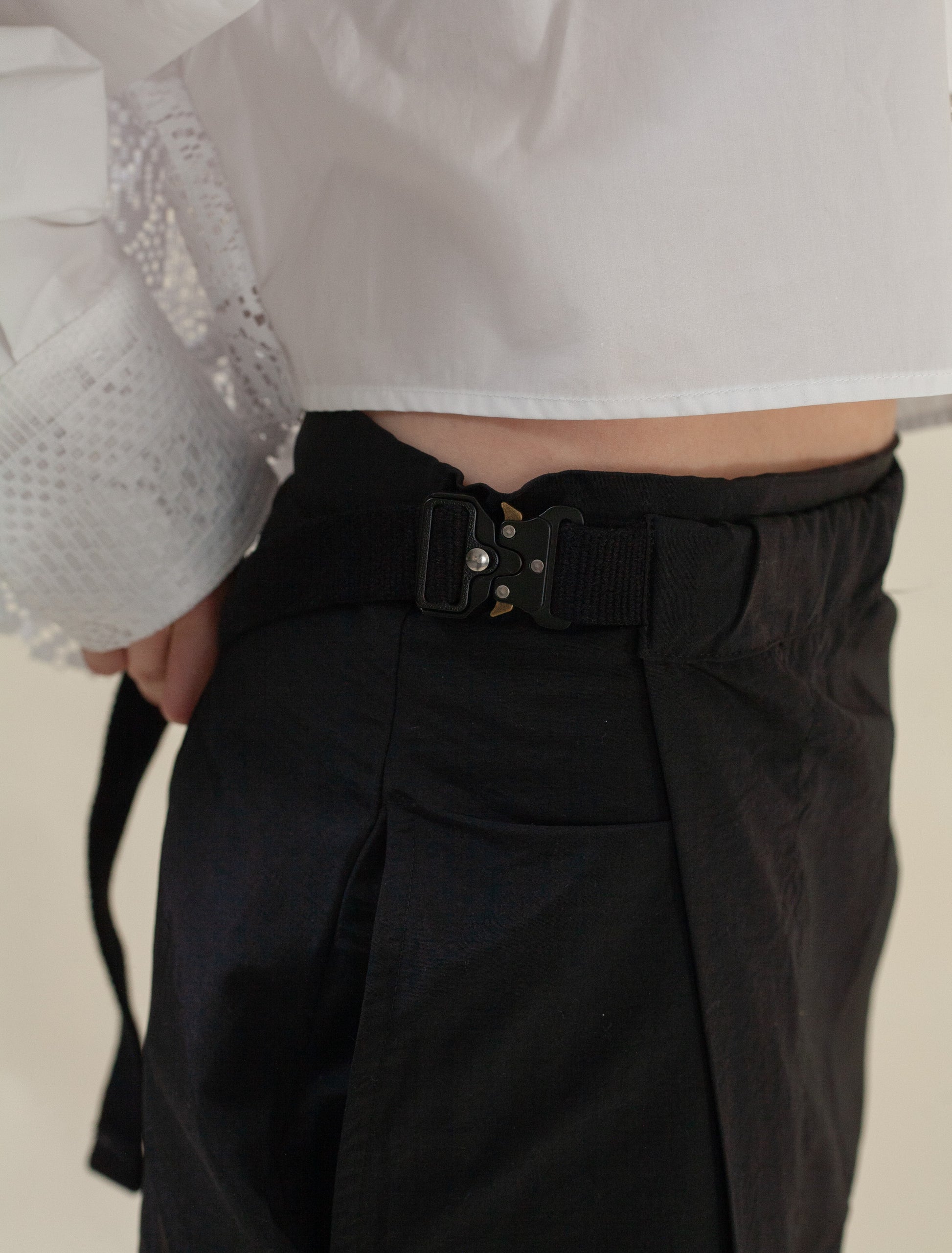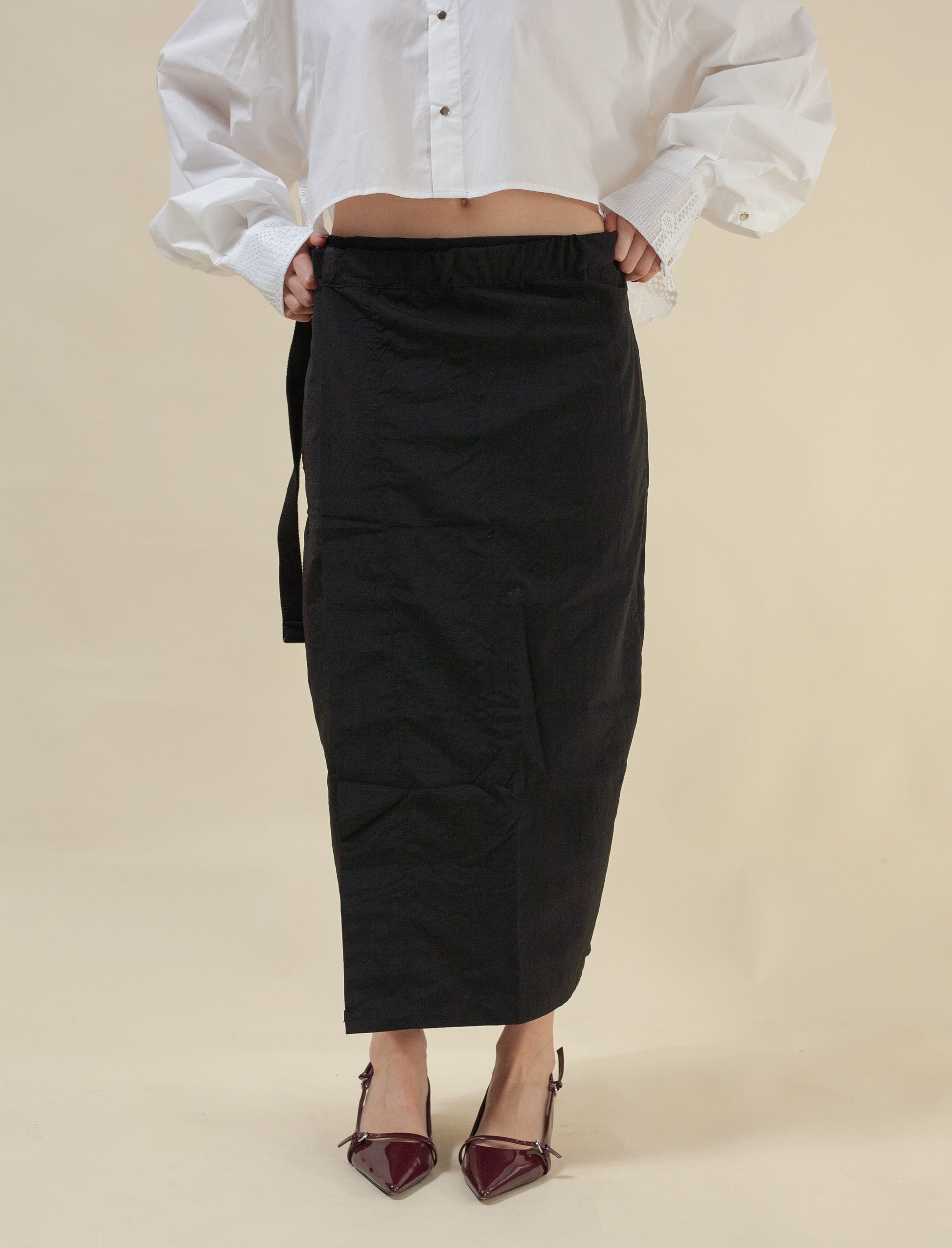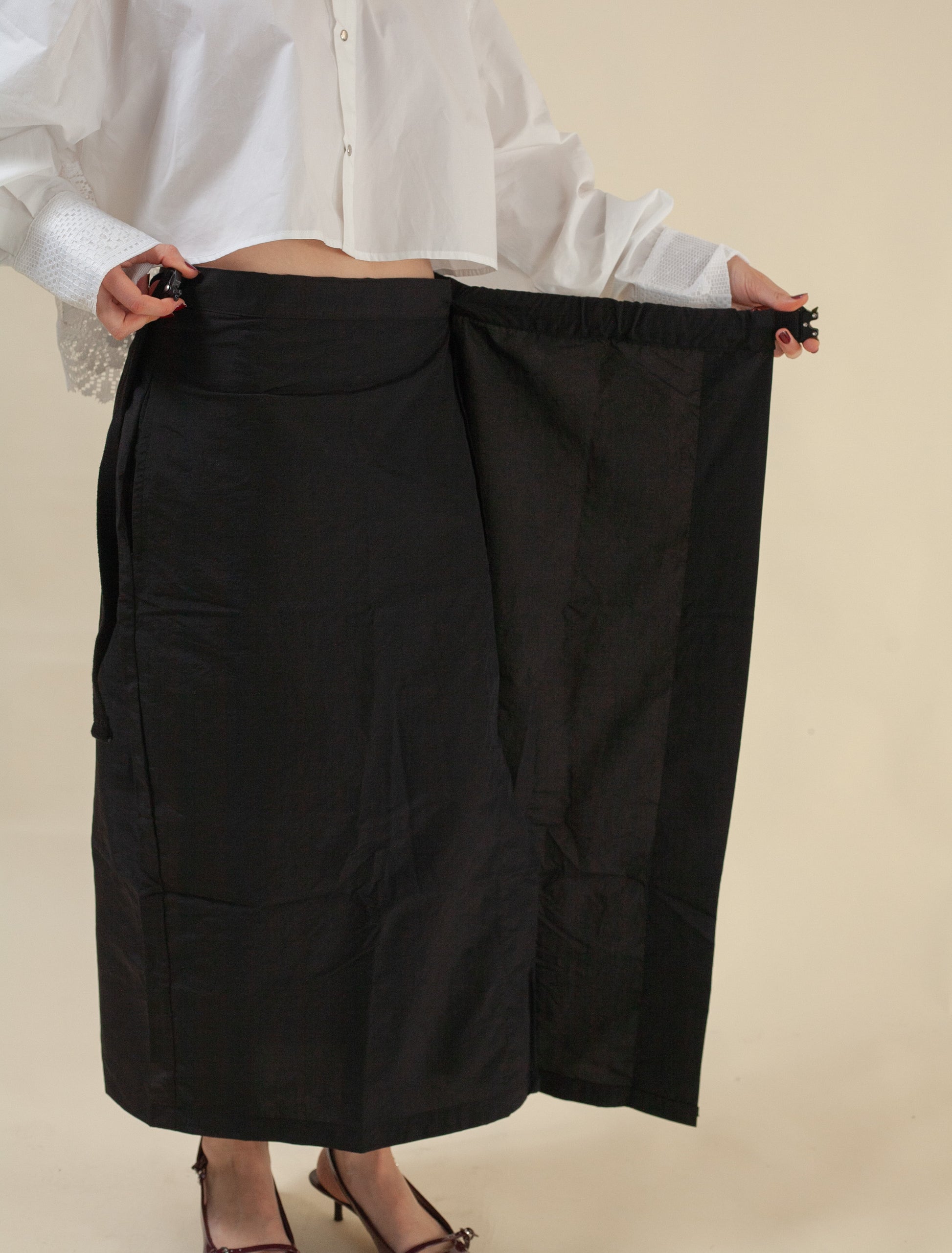 Made from Superior Quality technical fabric. The skirt is a midi wrap skirt which adjusts on the hip for great fit. It is finished with contrast weave belt and high technical belt clasp closing mechanism. A comfortable piece for a sophisticated look for everyday.