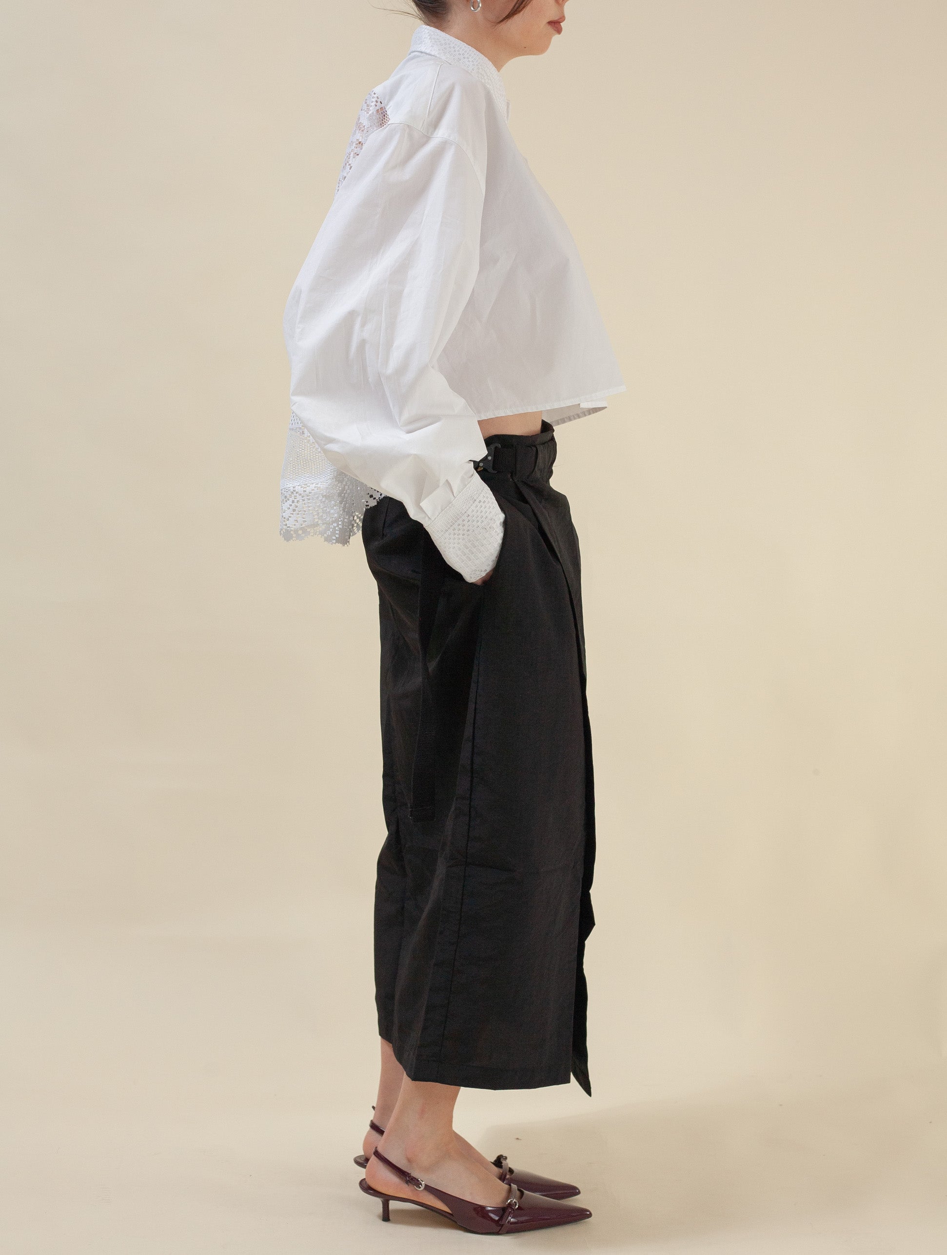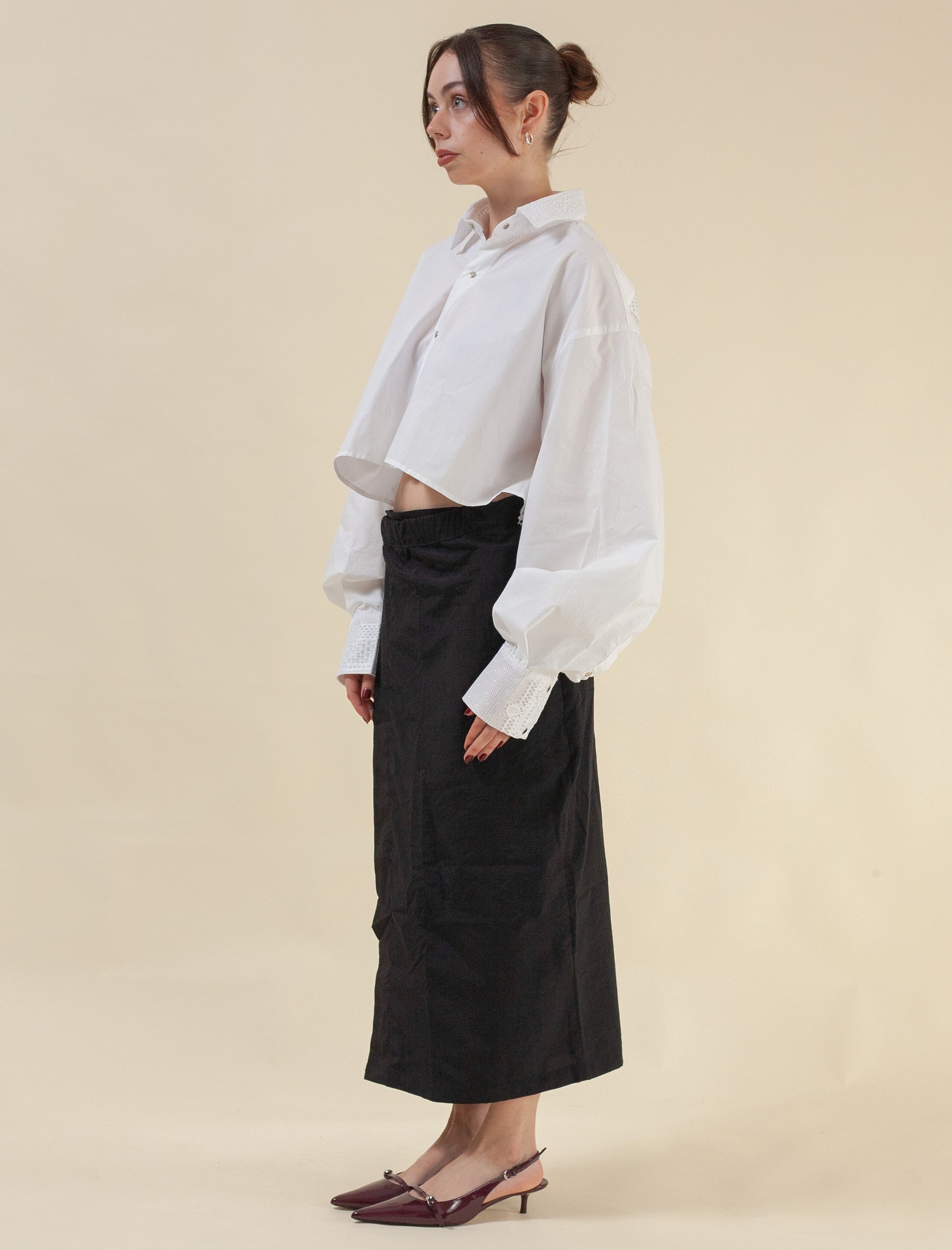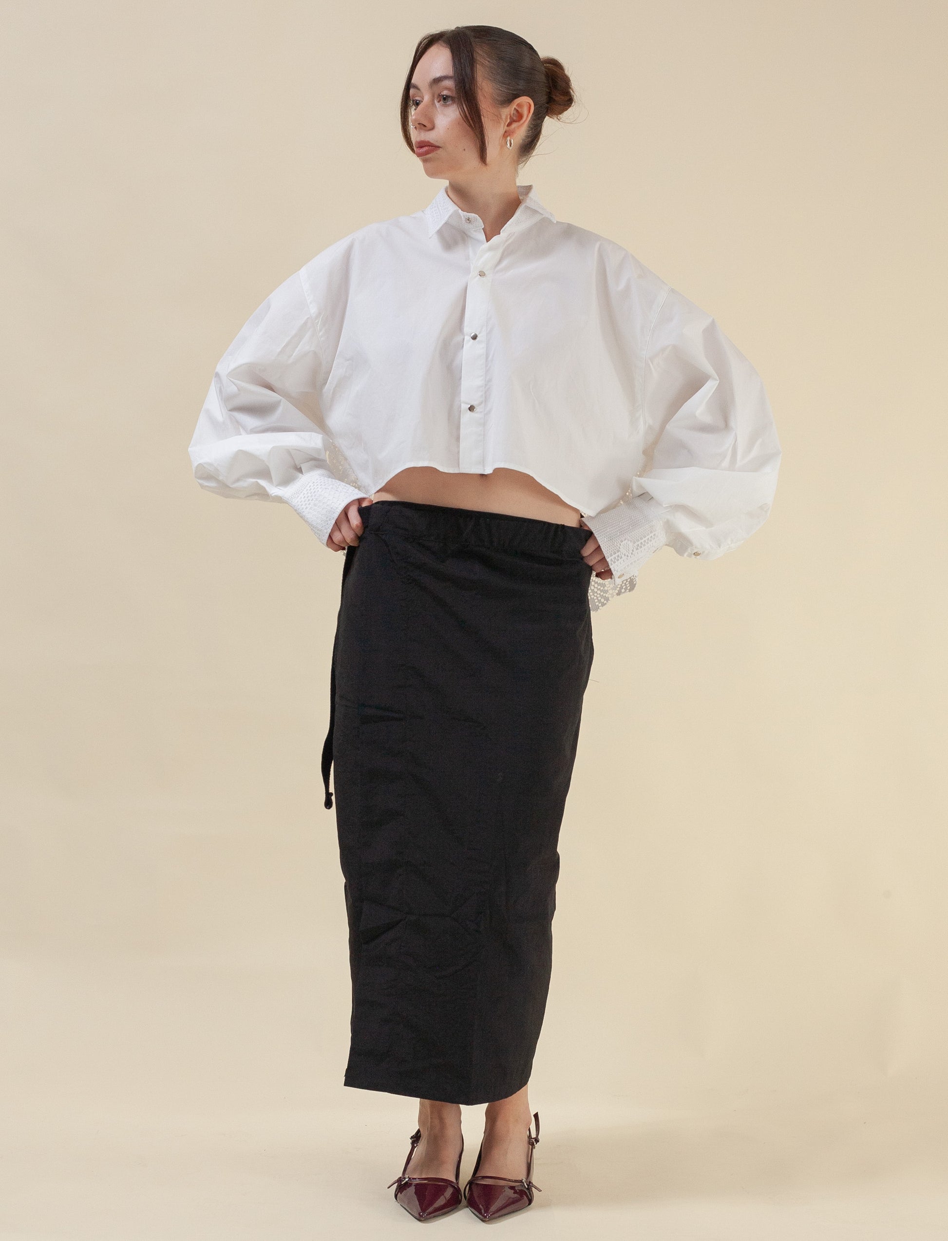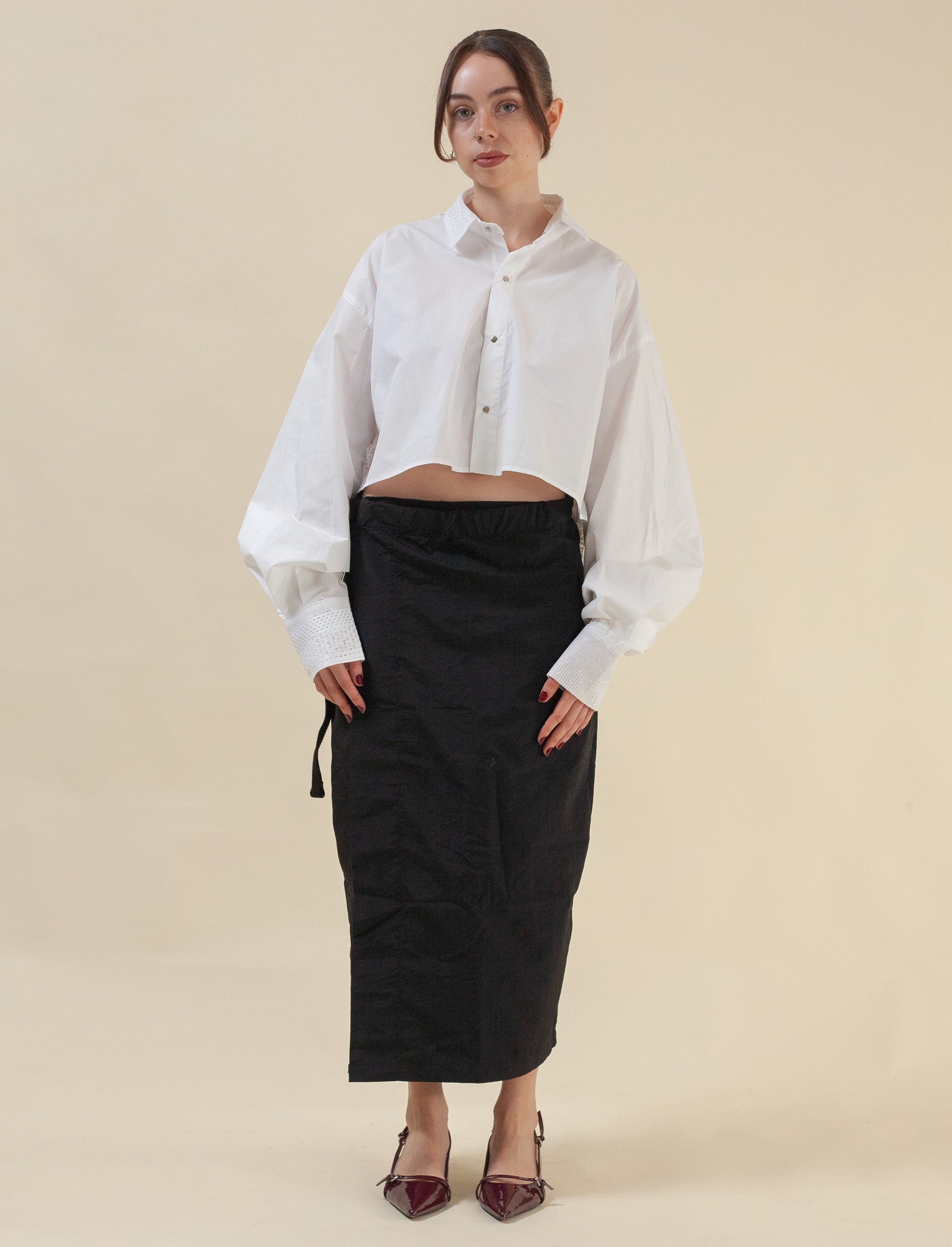 Made from Superior Quality technical fabric. The skirt is a midi wrap skirt which adjusts on the hip for great fit. It is finished with contrast weave belt and high technical belt clasp closing mechanism. A comfortable piece for a sophisticated look for everyday.