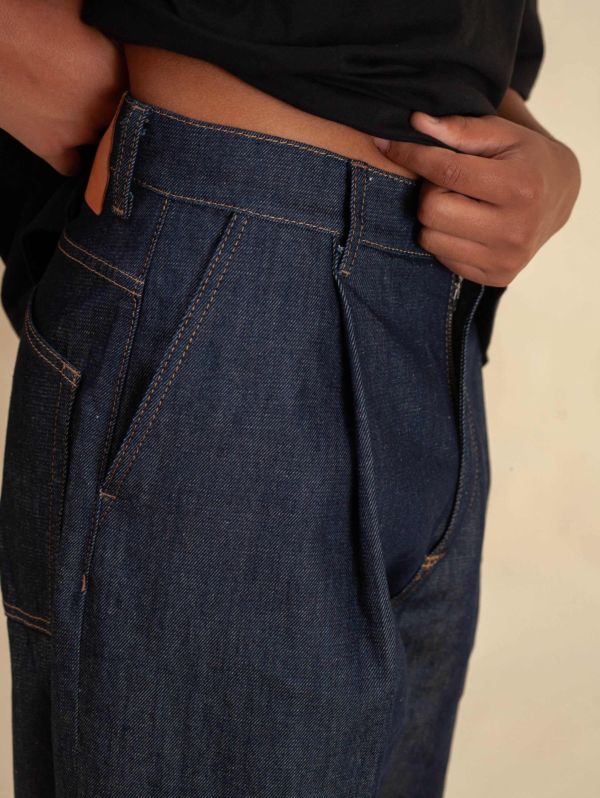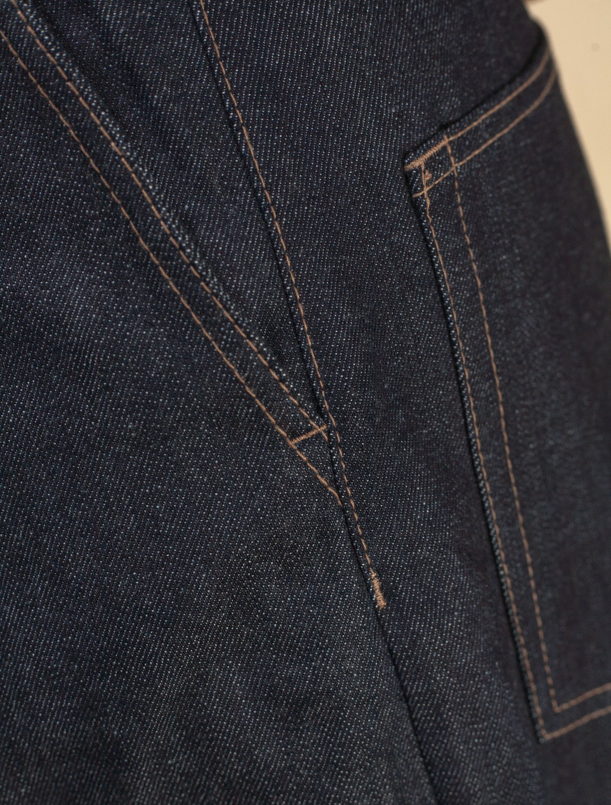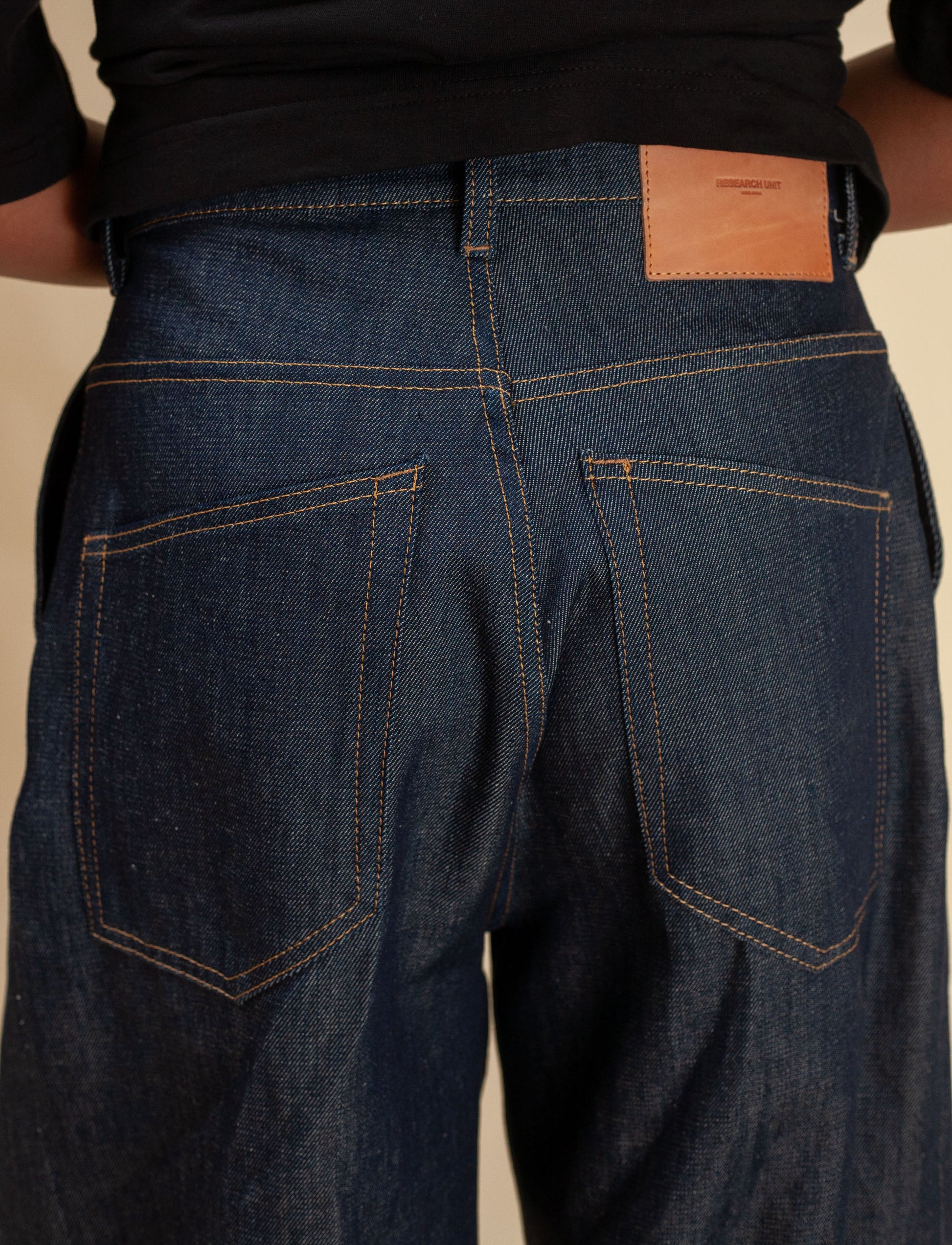 Made from Japanese raw denim sourced from the Kojima denim district in Japan. It is a wide, durable, workwear jeans and considered, thoughtfully designed jeans that can be worn as both a relaxed look with a t-shirt and sneakers or with a formal shirt and/or blazer for work. Designed as a unisex piece. Wear the jeans a couple of times before washing to allow the jeans to mould and soften and try not to wash often.