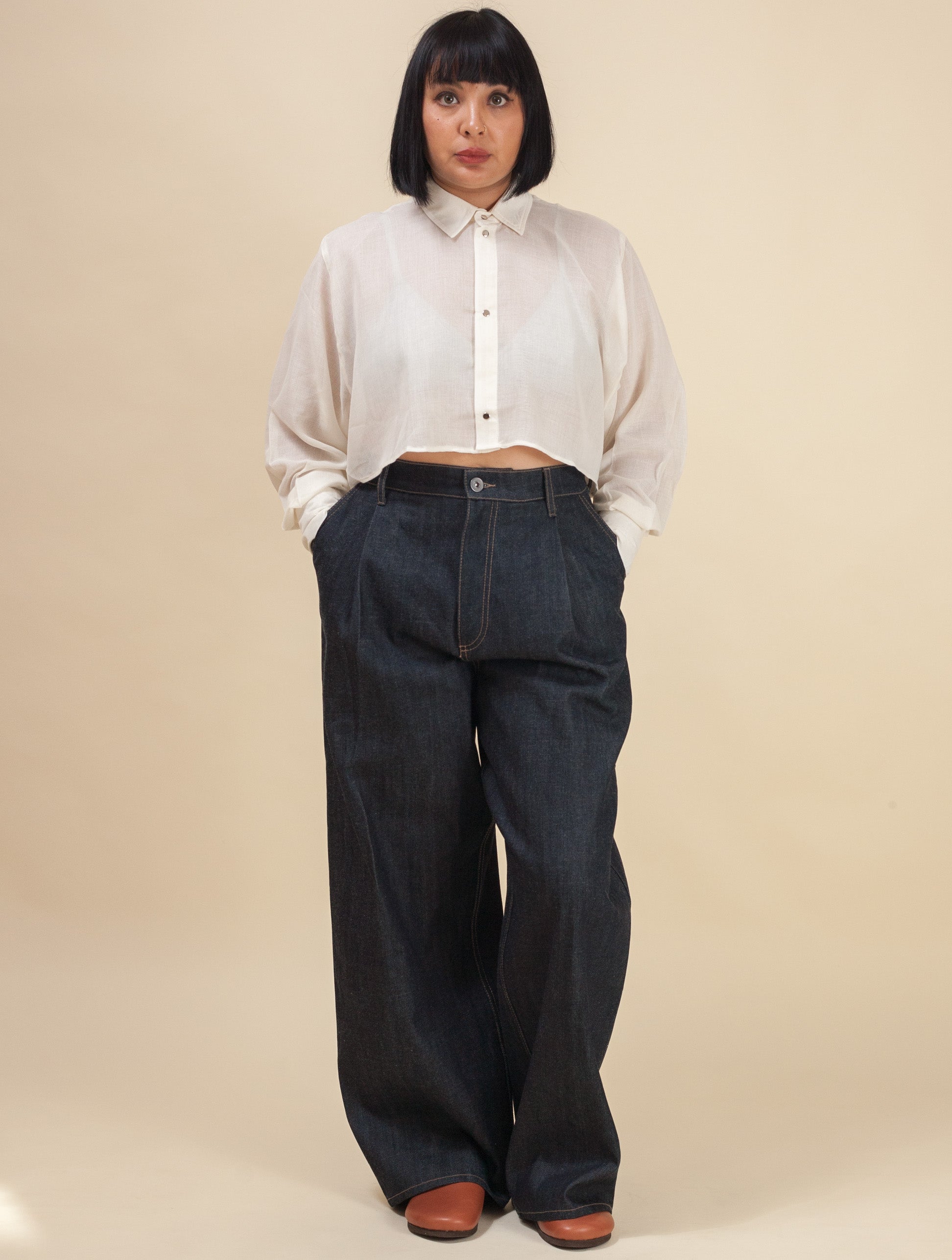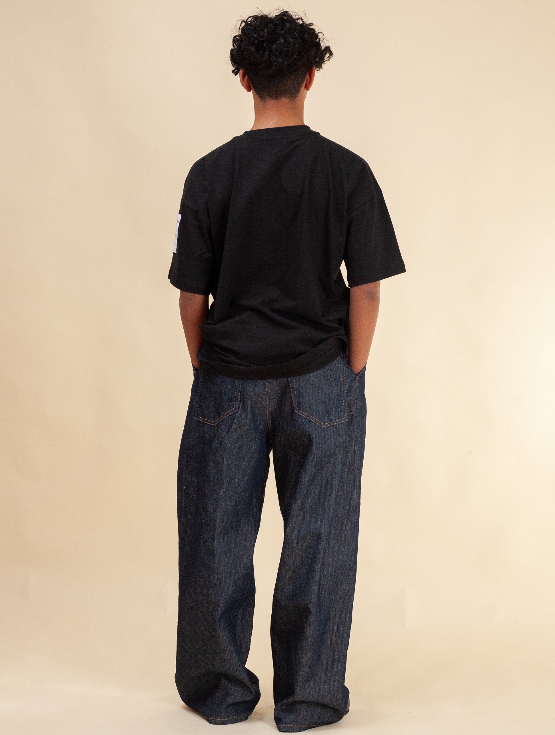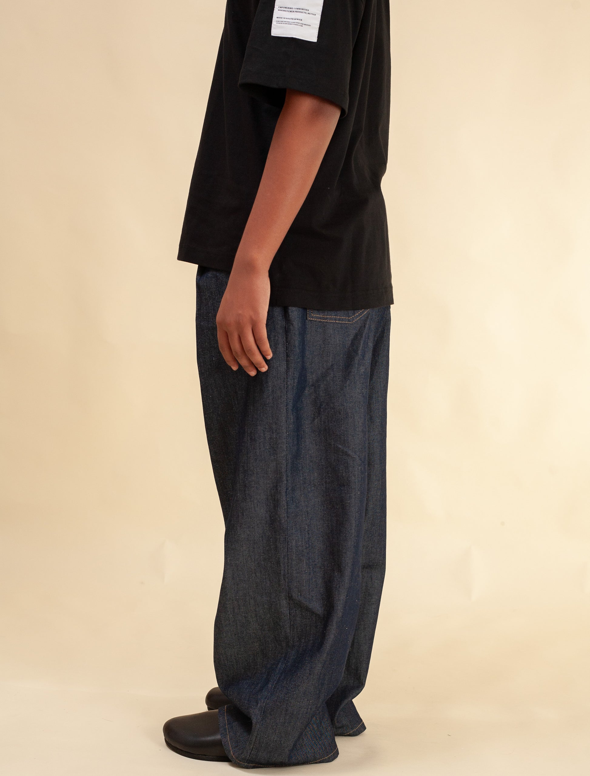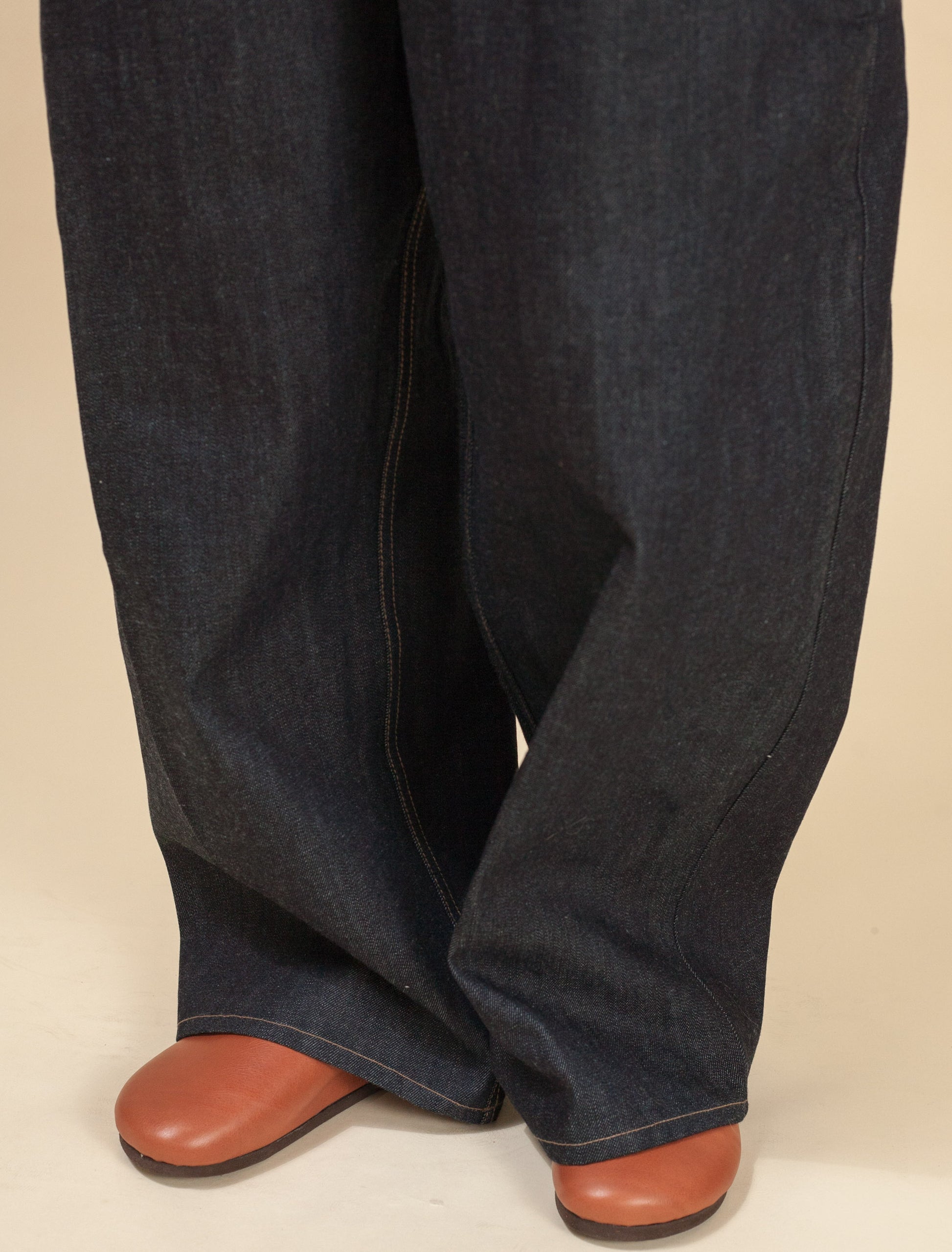 Made from Japanese raw denim sourced from the Kojima denim district in Japan. It is a wide, durable, workwear jeans and considered, thoughtfully designed jeans that can be worn as both a relaxed look with a t-shirt and sneakers or with a formal shirt and/or blazer for work. Designed as a unisex piece. Wear the jeans a couple of times before washing to allow the jeans to mould and soften and try not to wash often.