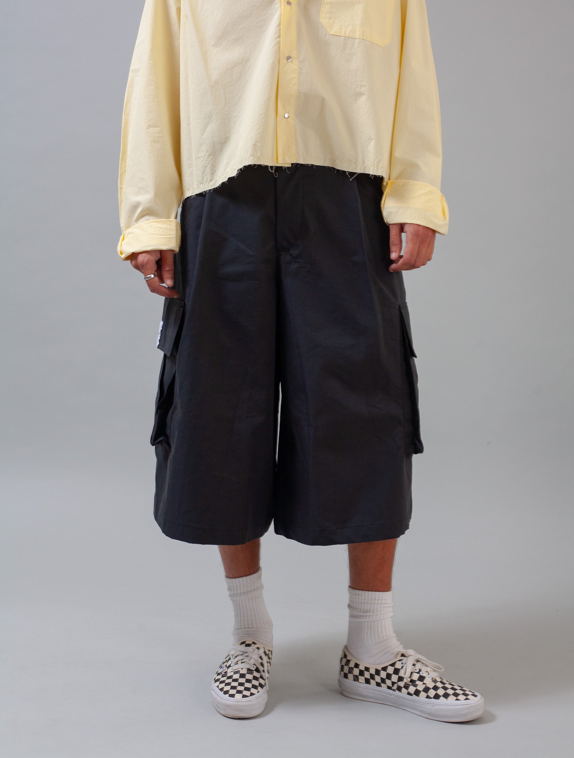 Crafted from crisp superior quality Technical Cotton Twill for a structured yet broken-in feel. The knee-calf length silhouette features a low crotch, wide leg, and sleek 3D cargo pockets.